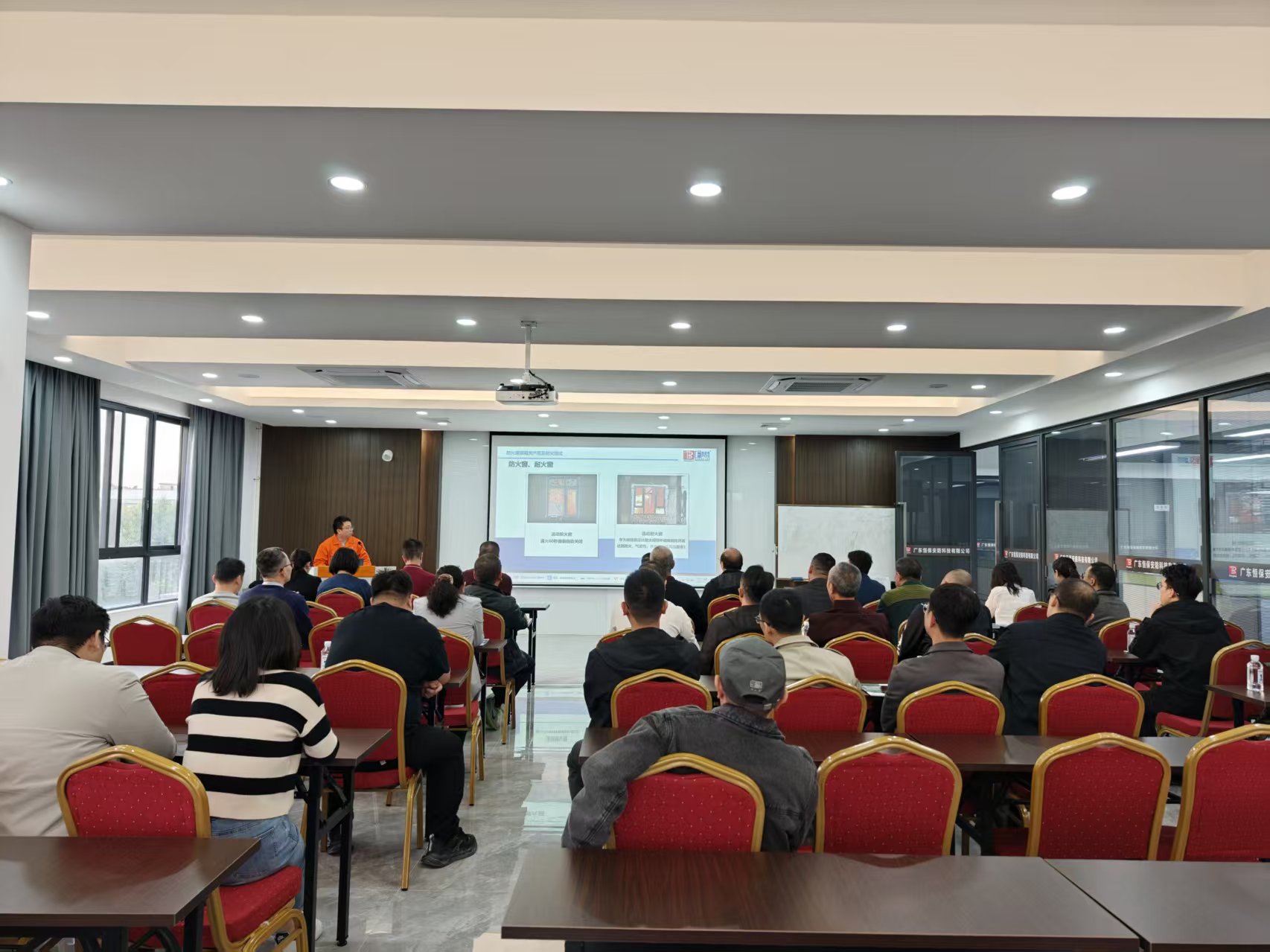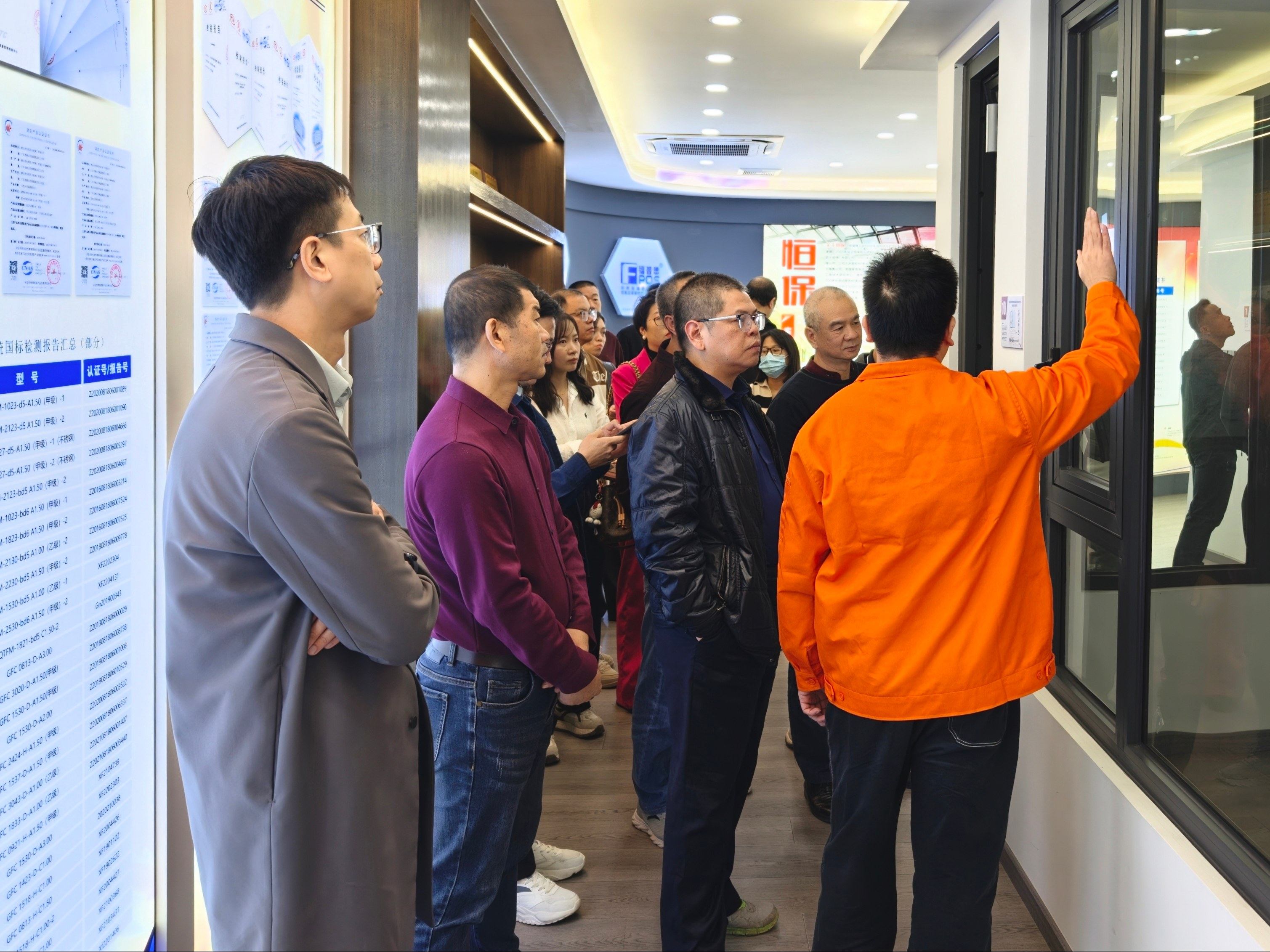 参访团一行首先参观恒保展厅,从企业发展历程到各类防火核心产品,全方位展现了公司深耕行业多年的技术积淀与综合实力。代表们驻足聆听,就产品性能参数、实际应用场景等问题展开热烈交流,对公司的研发实力和产品体系给予了认可。