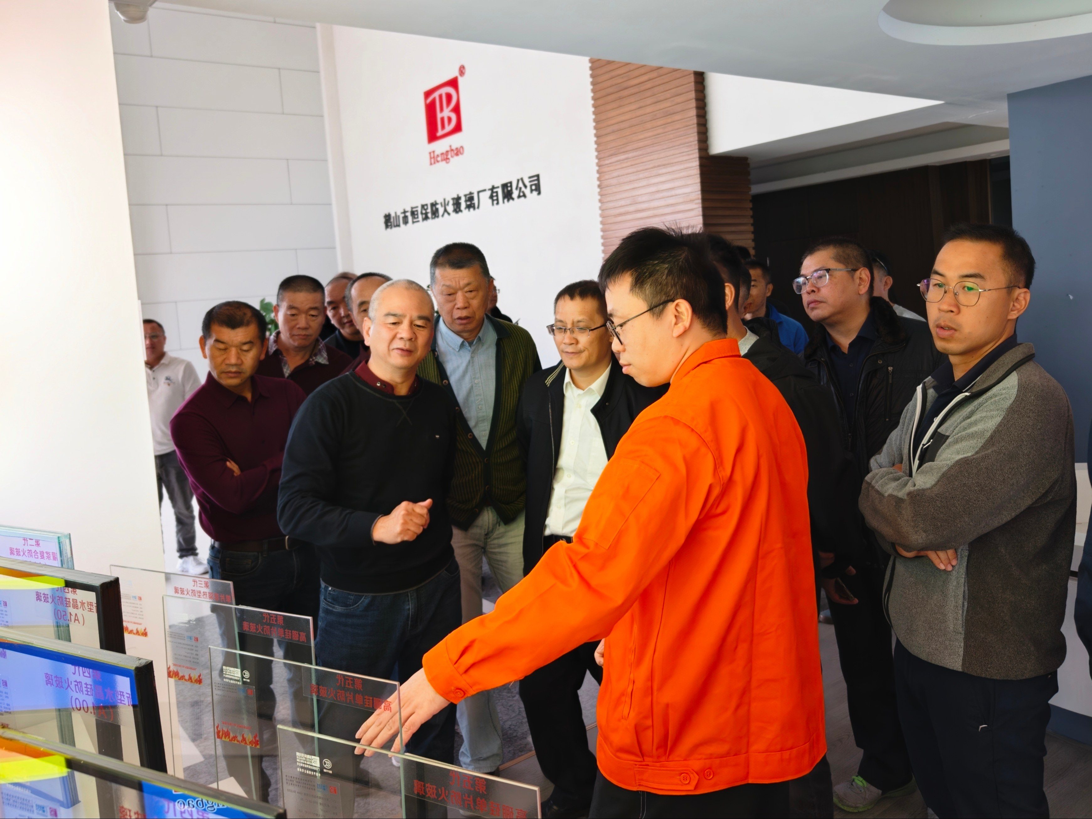考察团前往恒保研发实验楼观看隔热型防火玻璃与非隔热型防火玻璃的对比实验,通过直观对比和专业讲解,对不同类型的防火玻璃有了全方位认知。